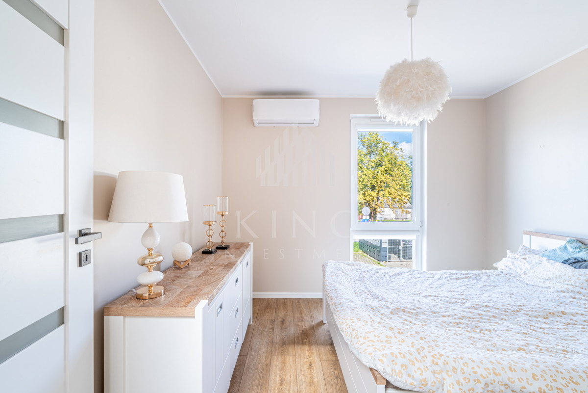 - Wysoki standard wykończenia - nowoczesne, jasne wnętrza, dwie jednostki klimatyzacyjne (parter i piętro), ogrzewanie podłogowe w całym domu.