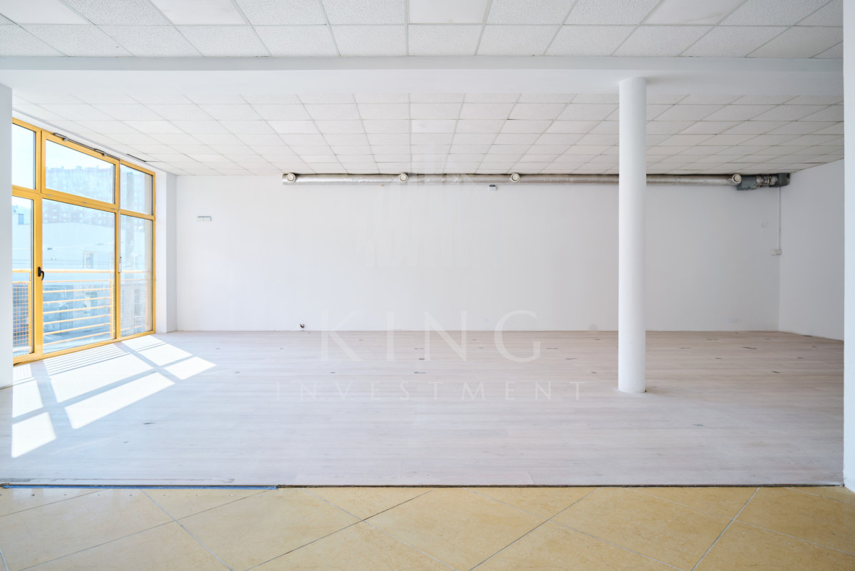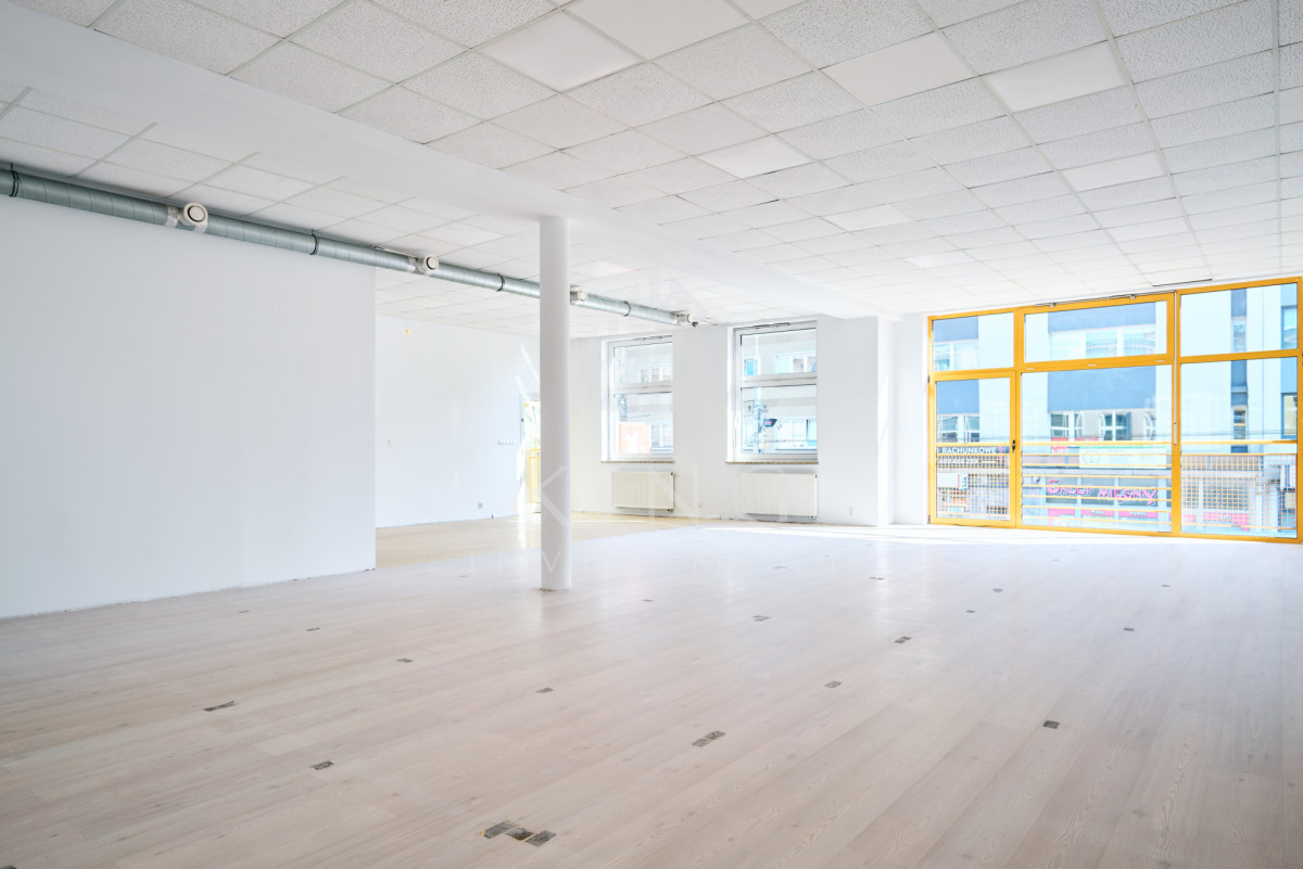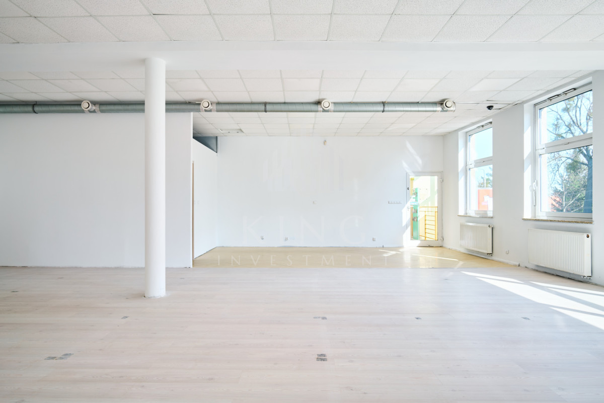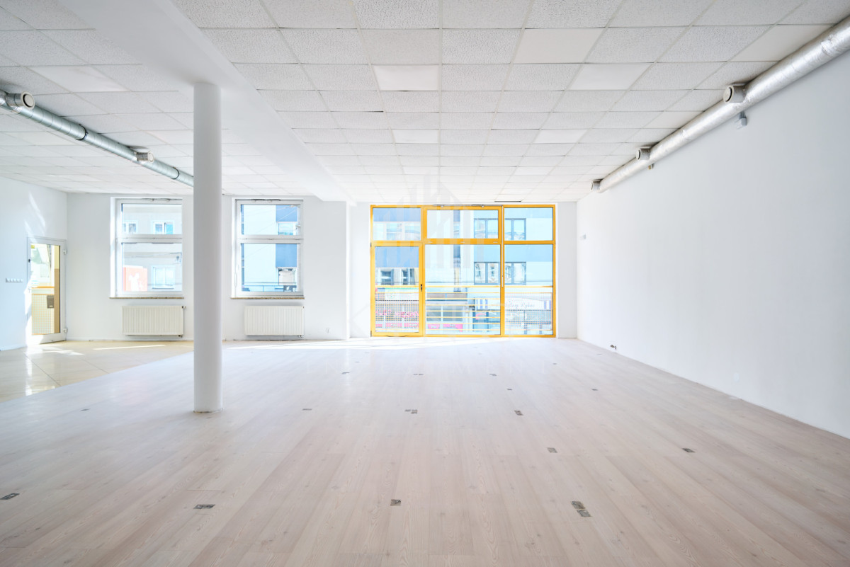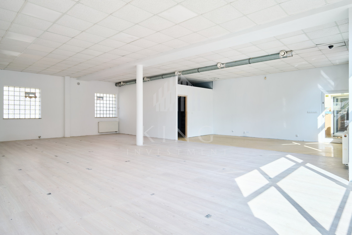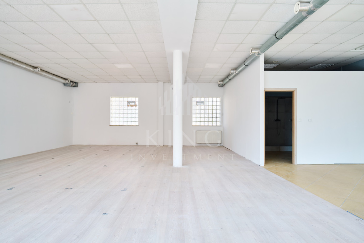 Lokal o powierzchni 128m² składa się z dużej, otwartej przestrzeni typu open space oraz części socjalnej. Wcześniej funkcjonował jako sala sztuk walki oraz crossfit, dzięki czemu jest w pełni przystosowany pod działalność sportową lub rekreacyjną. Budynek nie posiada windy