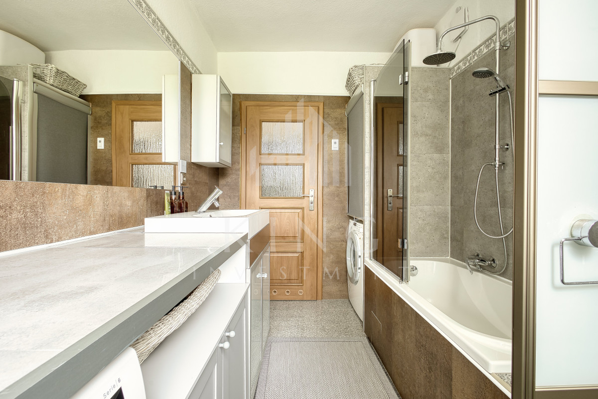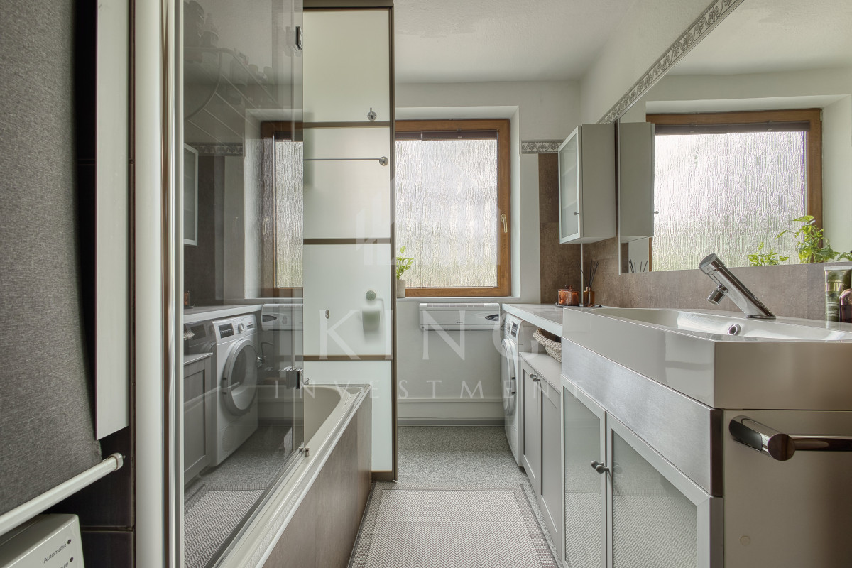 łazienki z pralką i suszarką, garderoby, dużego wiatrołapu i przestronnego holu.
