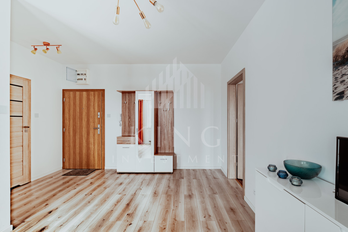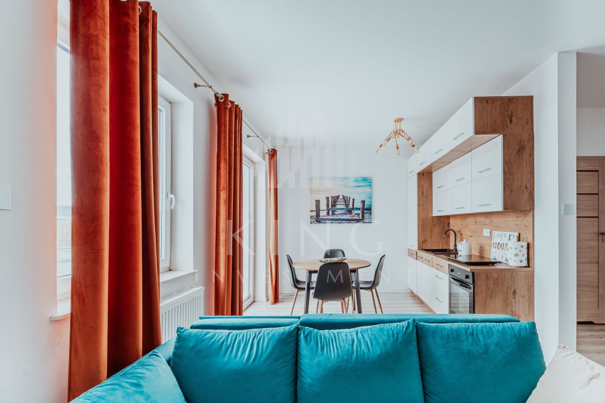 Apartament wykończony w dobrym standardzie i wyposażony, dzięki czemu nowy właściciel może wprowadzić się lub wynająć od razu, bez ponoszenia większych kosztów.