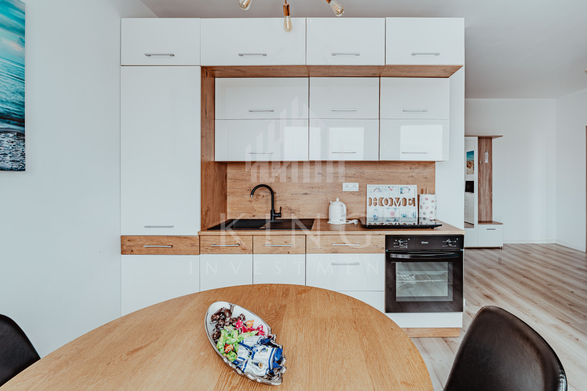 - aneks kuchenny - został wyposażony w nowe meble w zabudowie, montowane w Austrii i Niemczech, stół z krzesłami, sprzęty AGD: lodówkę, piekarnik, płytę indukcyjną.