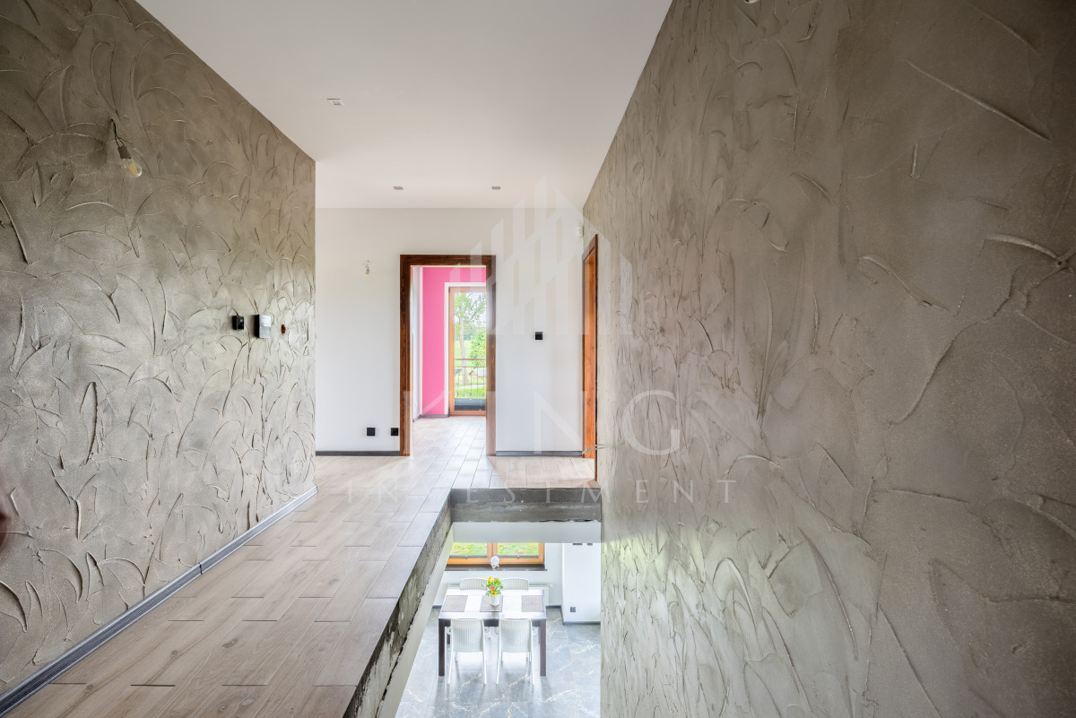 Dom jest niemal w pełni wykończony i gotowy do zamieszkania. Wymaga jedynie kilku finalnych prac, takich jak wykończenie dekoracyjne elewacji, montaż balustrad na balkonach oraz zagospodarowanie kuchni i pozostałych łazienek według indywidualnych preferencji. To jednak detale, które - w kontekście całej nieruchomości - stanowią jedynie niewielki ułamek prac, a jednocześnie dają przyszłemu właścicielowi możliwość dostosowania przestrzeni do własnego gustu.