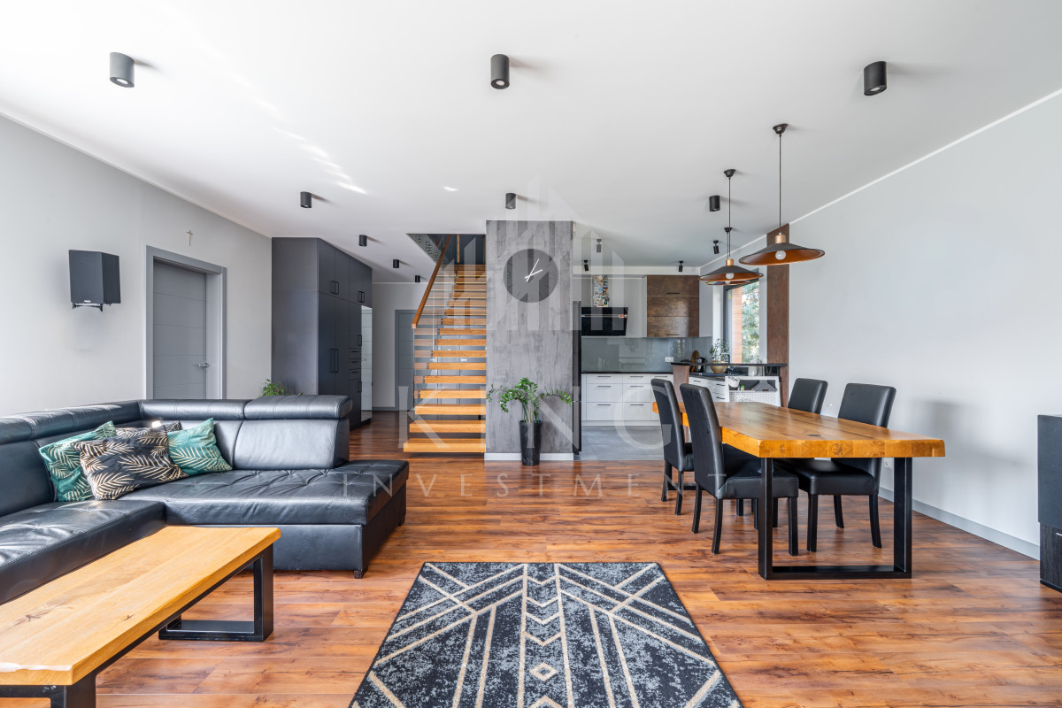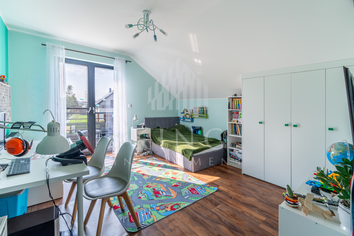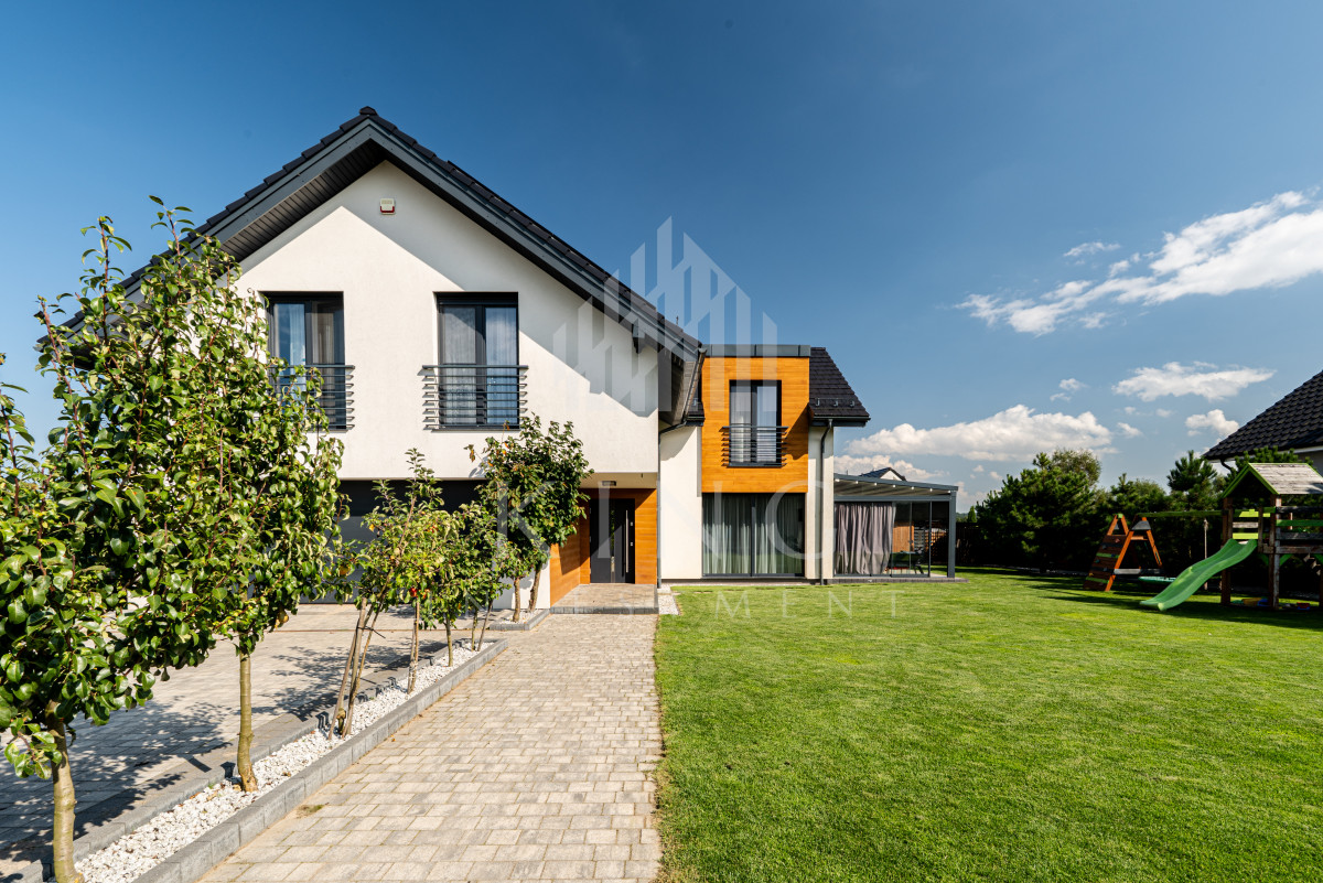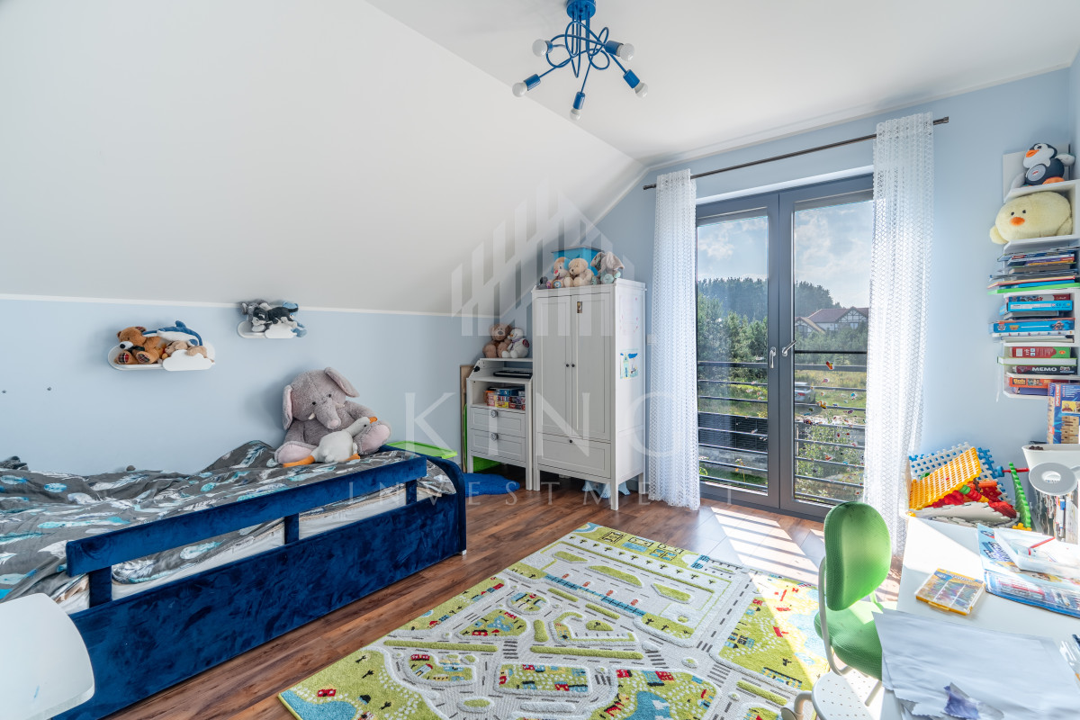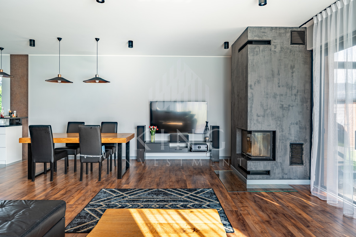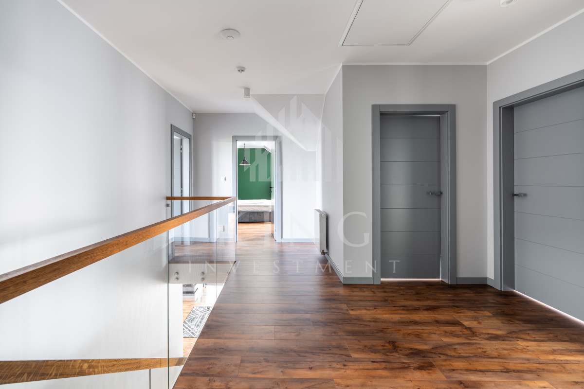 - Nowoczesne systemy: fotowoltaika 5,14 kW, rolety elektryczne, klimatyzacja, centralny odkurzacz, strefowy alarm, monitoring zewnętrzny, sterowanie z aplikacji
