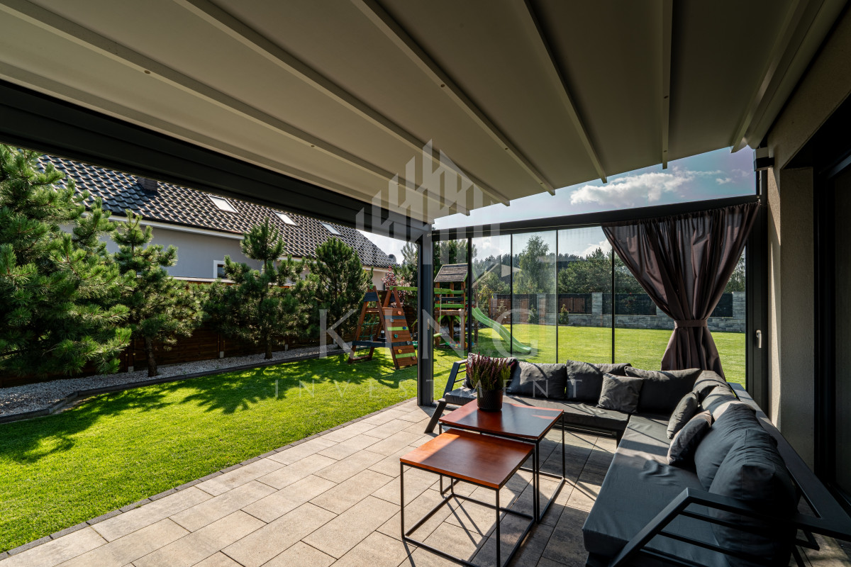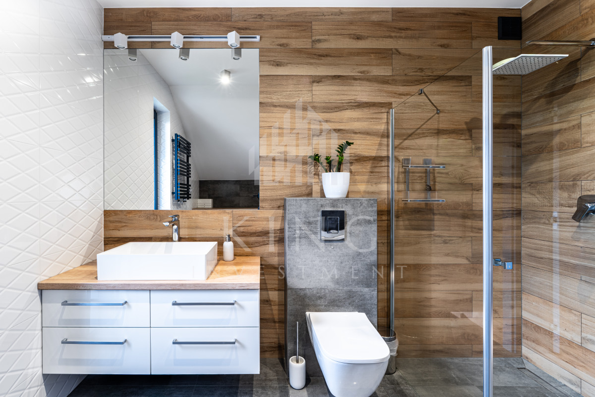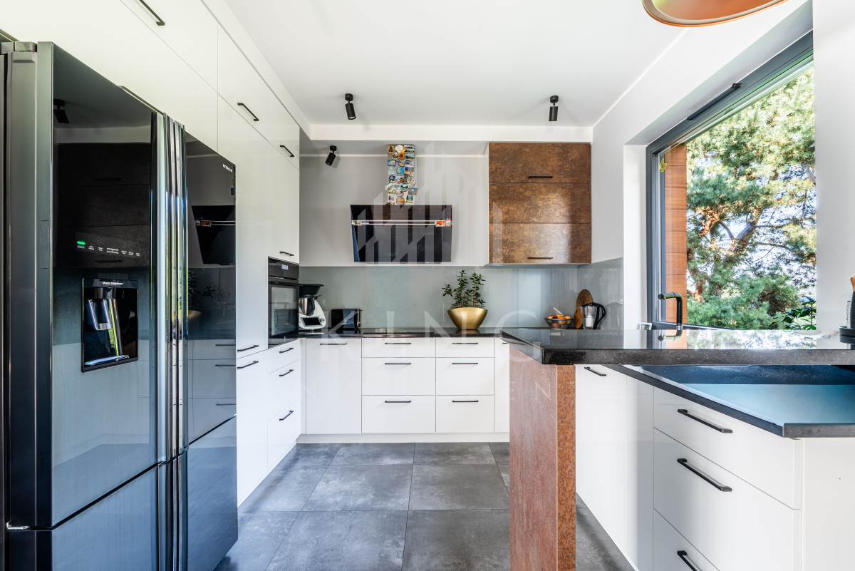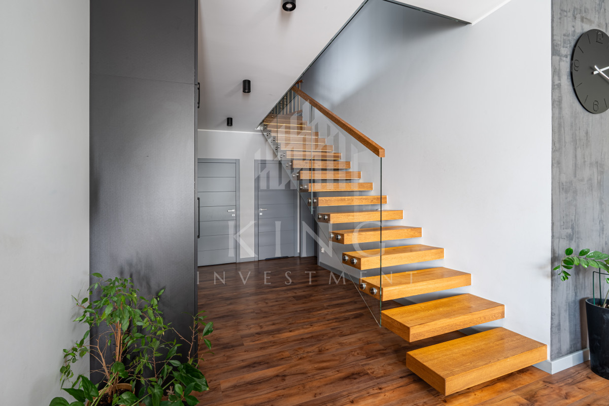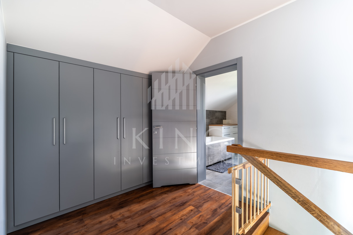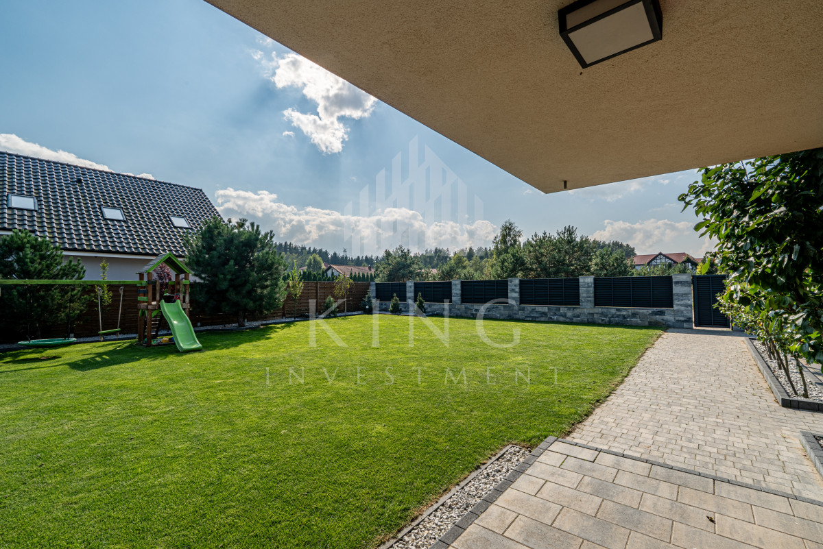 - Nowoczesne systemy: fotowoltaika 5,14 kW, rolety elektryczne, klimatyzacja, centralny odkurzacz, strefowy alarm, monitoring zewnętrzny, sterowanie z aplikacji
