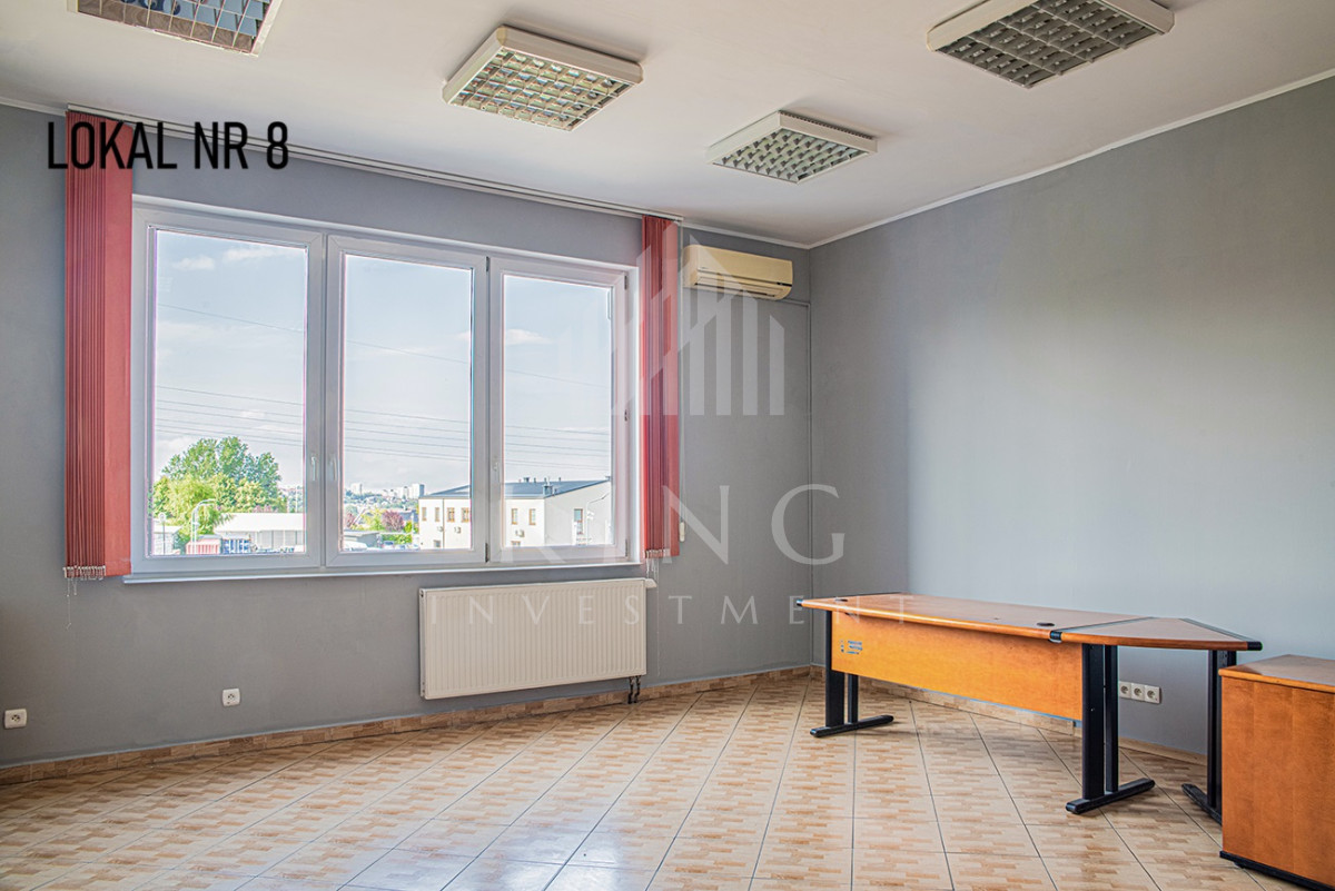 Kameralny, ogrodzony obiekt z dostępem do wspólnych pomieszczeń socjalnych. Monitoring, miejsca parkingowe dla najemców oraz spokojne, uporządkowane otoczenie sprzyjają codziennej pracy. Budynek oferuje funkcjonalność i bezpieczeństwo, stanowiąc idealne rozwiązanie dla mniejszych firm, gabinetów i usług lokalnych.