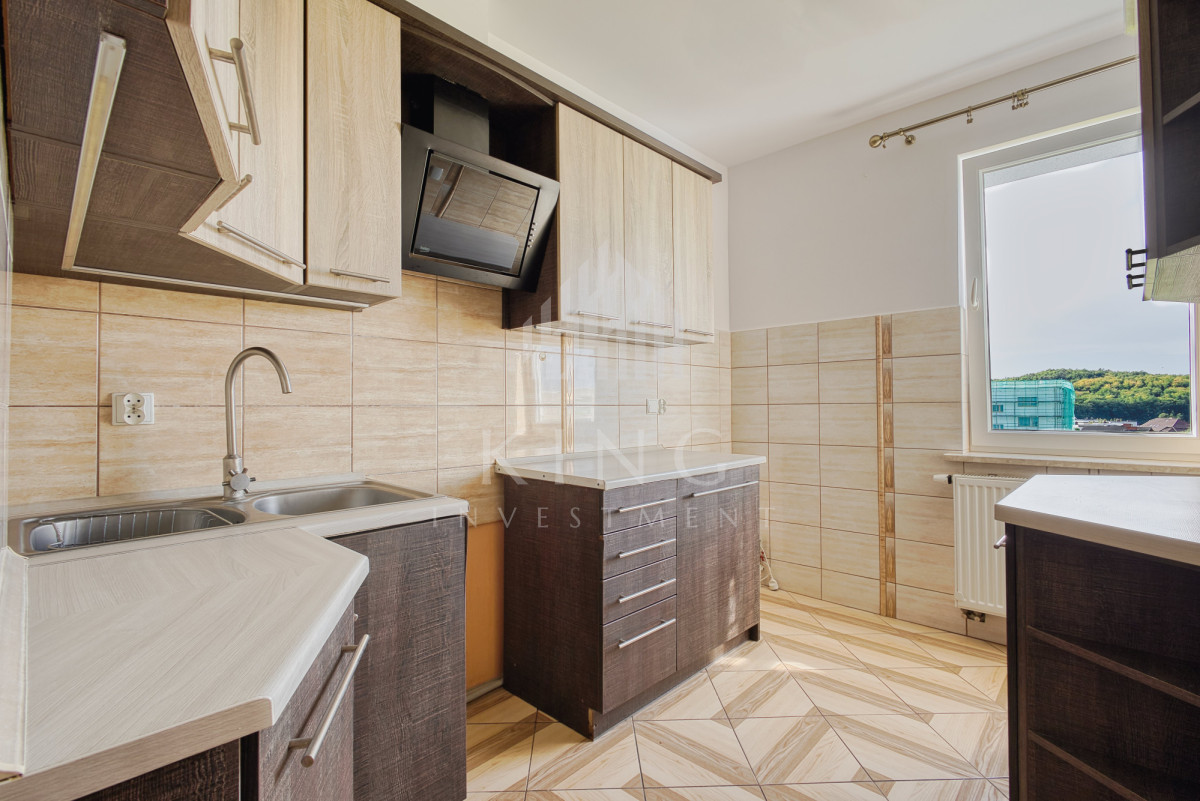 Kuchnia wyposażona jest w zabudowę meblową. Ze sprzętów AGD zostaje zmywarka - pozostałe urządzenia (kuchenka, piekarnik, lodówka) należy wstawić we własnym zakresie.